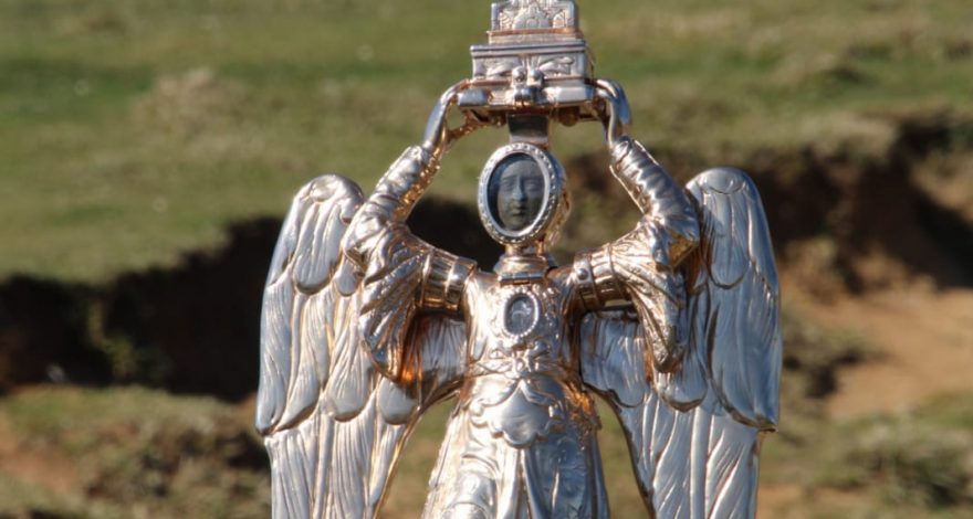 En Aralar una obra clave es la imagen de San Miguel depositada en un relicario del siglo XVIII revestido de plata en 1756 por el platero pamplonés José de Yábar. Representa al arcángel, con las alas desplegadas y los brazos en alto sosteniendo la cruz sobre su cabeza. En ella se guarda una antigua talla de madera, reliquia que, según la tradición, fue dejada por el propio ángel. La imagen recorre decenas de localidades cada primavera.